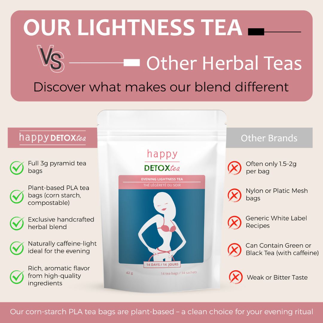 Dank seiner Inhaltsstoffe kann der Schlankheits-Tee von Happy Detox Tea folgendes: